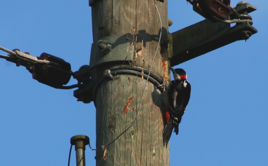 Buntspecht als Leitungsmasten-Hacker - Foto: Dr. Sabine Tapertzhofen, Wolfratshausen (LBV)
